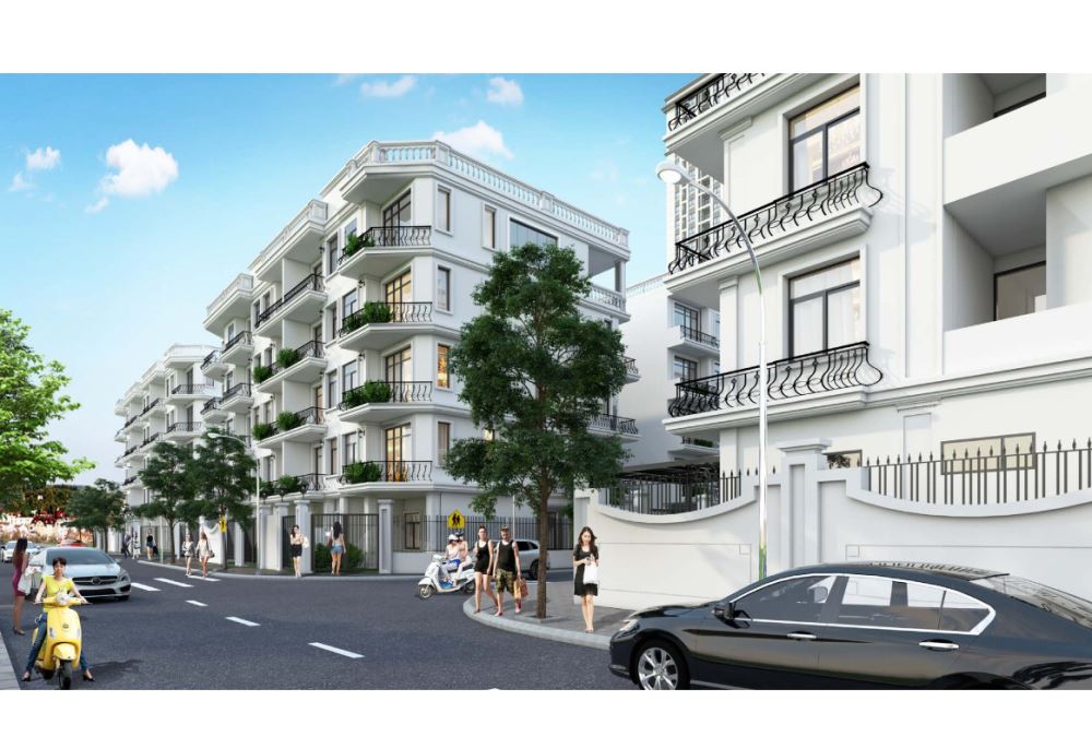 Tại The Charm An Hưng: Nổi bật với 38 căn shophouse thấp tầng thiết kế 5 tầng, nằm ở vị trí đắc địa mặt đường lớn, rất thuận lợi cho hoạt động thương mại.