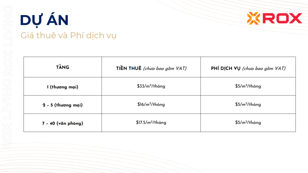 Tòa tháp hiện đại 40 tầng của ROX Tower Goldmark City gồm 32 tầng văn phòng hạng A và 5 tầng trung tâm thương mại với đầy đủ tiện ích như F&B, gym và các dịch vụ hỗ trợ khác.