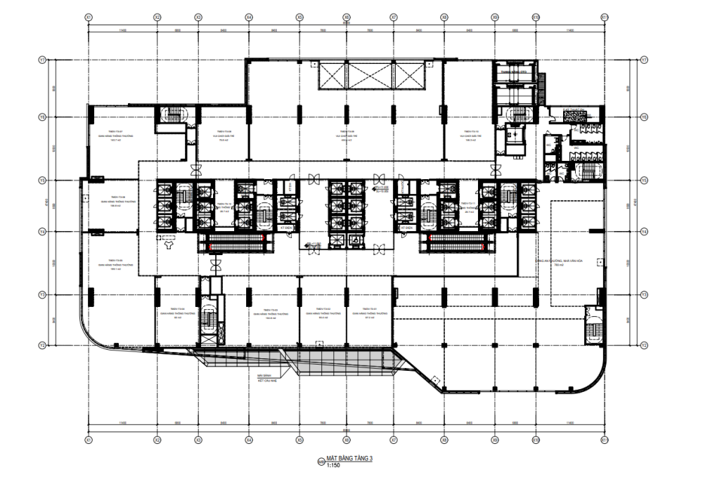 3 tầng hầm rộng rãi đảm bảo chỗ để xe thoải mái cho cả nhân sự và khách hàng, giảm thiểu tình trạng thiếu hụt bãi đỗ xe trong khu vực đông dân cư và trung tâm thương mại.